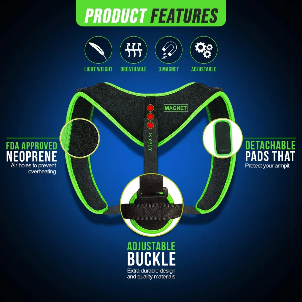 DESCRIPCIÓN: CORRECTOR DE POSTURA DE ESPALDA UNISEX CON IMANES El corrector de postura es discreto bajo las camisas y blusas, y encaja perfectamente sobre sostenes deportivos. La tela es transpirable y es un producto ligero y cómodo, hecho de neopreno y aprobado por el FDA. Es ajustable para la mayoría de tamaños y formas de cuerpo (debes medir tu pecho por debajo de los brazos). Tiene imanes ubicados estratégicamente que ayudan a eliminar las jorobas gracias a ondas magnéticas correctivas débiles, que debilitan las celulas grasas del cuerpo, además de ofrecer soporte para la espalda. Tiras ajustables en la parte delantera, y en la parte trasera. Es invisible bajo la ropa, evita dolor y molestia en la piel, las marcas rojas y la irritación bajo los brazos. Puedes usarlo en casa, mientras entrenas en el gimnasio, en el camino, o en el trabajo. CARACTERÍSTICAS: * Tecnología patentada de corrección de la postura. * Diseñado para mantener la postura y alineación naturales de la espalda, utiliza una terapia correctiva que puede ayudar a: . Aliviar la molestia de la espalda. . Reducir la tensión muscular. . Mejora tu postura. . Prevenir nuevas lesiones. . Uso para hombres y mujeres. . Ajustable. . Pequeño y fácil de guardar. . Invisible debajo de la ropa. . Con imanes en la espalda. ESPECIFICACIONES: * Genero: Hombres y Mujeres * Ajustable: De la talla S a la talla L * Material: Neopreno * Aprobado por el FDA * Fácil de usar * Fortalece espalda y hombros * Detiene el encorvamiento * Soporte para la espalda PAQUETE INCLUYE: * 1 Corrector de postura unisex ajustable