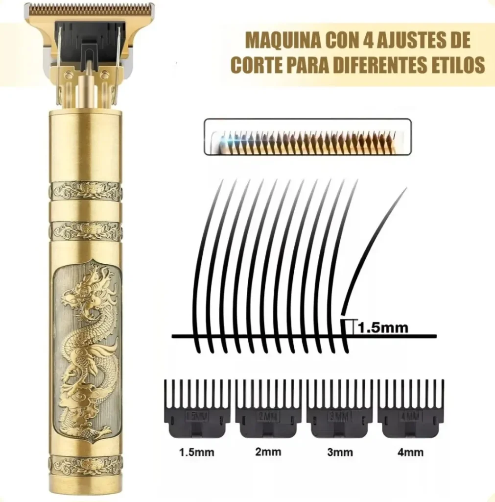 La Máquina De Afeitar Rasuradora Eléctrica Barba Hombre Dorado, modelo Vintage T10, es la herramienta ideal para aquellos hombres que valoran la elegancia y el rendimiento en su rutina de afeitado . Con su acabado dorado, esta afeitadora no solo ofrece una apariencia sofisticada, sino también un rendimiento excepcional gracias a su diseño inalámbrico que permite una mayor movilidad y comodidad durante el uso. Equipado con cabezales removibles, este producto se adapta a tus necesidades específicas, ya sea para un afeitado apurado o un corte de pelo estilizado. La facilidad de limpieza con cabezales lavables asegura que tu máquina de afeitar se mantenga en condiciones óptimas, prolongando su duración y eficacia en cada uso. La combinación de tecnología avanzada y un diseño vintage hacen de la Máquina De Afeitar Rasuradora Eléctrica un producto que no solo cumple con las expectativas de rendimiento, sino que también aporta un toque de distinción a tu rutina personal. Ideal para hombres que aprecian la calidad y el estilo, esta máquina se convertirá en un indispensable en tu cuidado personal.