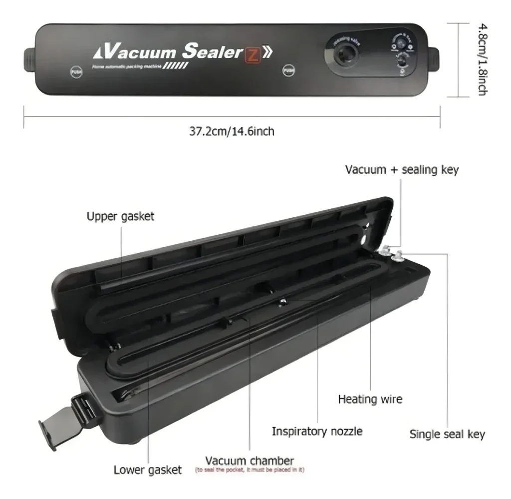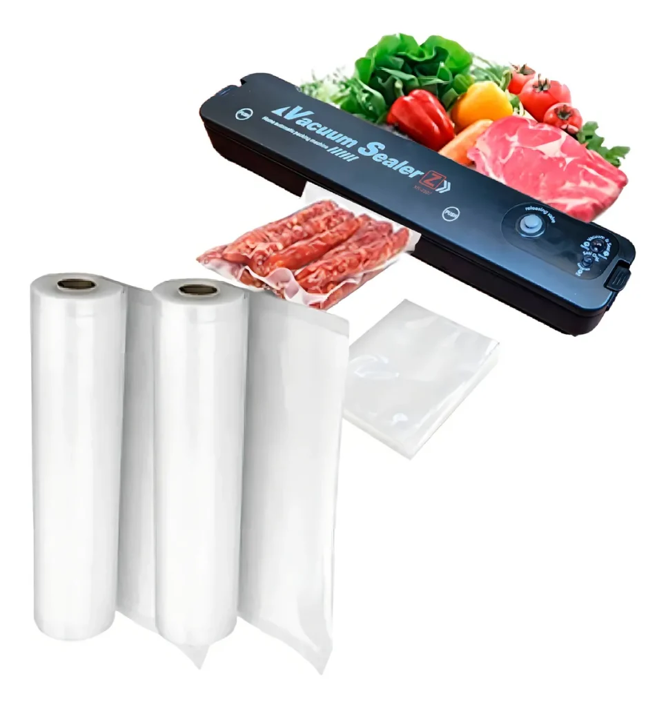 Sellador de alimentos al vacío para el hogar, comercial. Máquina comercial eléctrica de 220V 90W 1. Debe usar una bolsa al vacío. Las bolsas ordinarias no se pueden aspirar y solo se pueden sellar, y no se pueden usar bolsas de papel de aluminio. 2. El ancho máximo de sellado de esta máquina es de 28CM. No se pueden usar bolsas que excedan esta anchura. 3. No puede envasar alimentos al vacío con líquido fluyendo visible. Hay que tener en cuenta que si la bolsa de envasado de líquido está aspirada, afectará a la máquina. Maquina funciona con corriente eléctrica, enchufe chileno 2 x Bolsa Selladora Sellar Vacío Rollo Extra Fuerte 28x500cm Rollos para sellar al vacío para guardar y ahorrar alimentos. * alta calidad: se puede utilizar de forma segura, refrigeración, excelente para cocción al vacío. * apto para todas las máquinas selladoras al vacío: estos rodillos selladores al vacío están diseñados para usar con todas las máquinas selladoras al vacío. * más tiempo para mantener los alimentos frescos y ricos nutrientes: alimentos con envasado al vacío que mantienen los alimentos frescos durante mucho tiempo. perfecto cocción para al vacío y conservación refrigerada. * y económico conveniente: rollo de 28 cm de ancho con 500 de largo. Puede cortar una longitud de bolsa personalizada. * y seguro libre de riesgos: se puede reutilizar, lavar, hervir y lavavajillas. alimentos envasados al vacío para una mejor seguridad alimentaria, una mejor conservación de los alimentos.