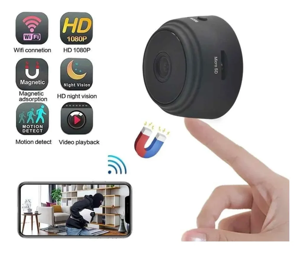 Cámara Full HD 1080: Con resolución HD 1080P 25 cuadros por segundo. Lente de grado profesional gran angular de 150 °, el video en vivo se puede ver a través de un teléfono inteligente iOS / Android, tableta, Macc o PC con Windows. Perfecto para la casa, la oficina o la familia como ama de llaves o niñera. – Formato de video: AVI – Número de cuadros: 25 – Ángulo de visión: 150 grados – Distancia de la cámara de detección deportiva: 6 metros en línea recta – Iluminación IPmum: 1 lux Tiempo de – grabación continua: aproximadamente 1 hora – Consumo de energía: 240ma / 3.7 v – Tipo de tarjeta de memoria: Tarjeta TF (no incluida) – Software de reproducción: VLC Player / SM Player – Sistema operativo de computadora: Windows / Macc OS X – Sistema operativo móvil: – Navegador web Android / iOS : IE7 y superior, chrome, firefox safari, etc. – Para la seguridad del hogar / oficina, y dispara hermosos paisajes en la carretera Gran angular de 150 ° – Admite visión nocturna, infrarrojos incorporados de 6 piezas – Visualización y grabación en tiempo real HD 1080p, cámara IP inalámbrica WiFi IP – Ultra pequeño y visible, fácil de esconder debajo de la mesa, debajo de la pared, debajo del techo, hay poderosos imanes por todas partes. – USB recargable, batería recargable de gran capacidad incorporada, aproximadamente 1-3 horas de carga – Admite multiplataforma (Android, iOS, Windows, Macc OS) y multiusuario (móvil y computadora).