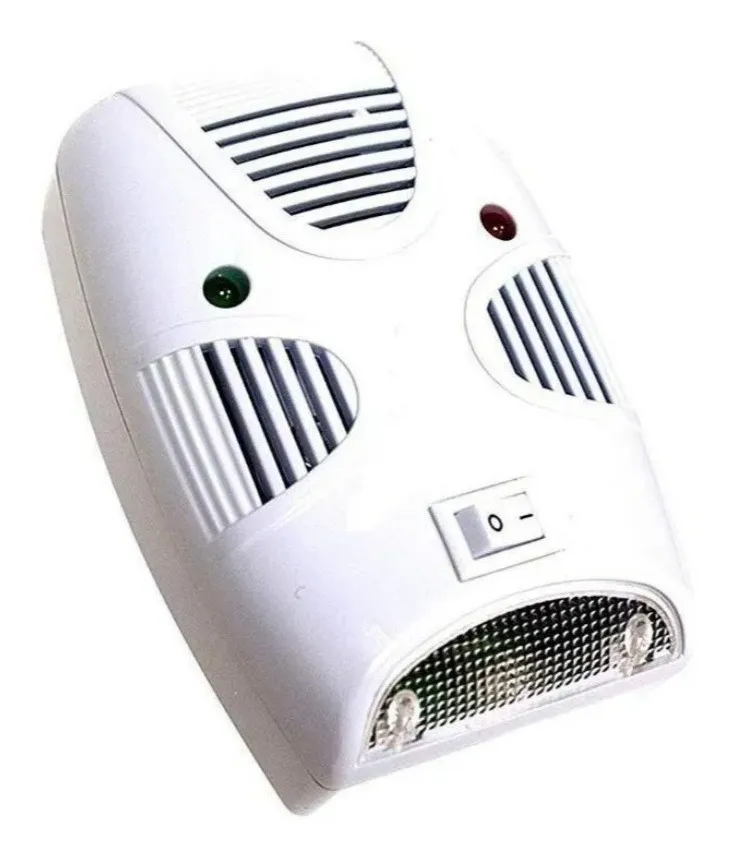 Repelente electrónico de mosquitos ultrasónico, repelente de cucarachas, plagas, ratones. Descripción del producto: Son Le molestas los molestos mosquitos cuando intenta dormir en ¿La noche? O NO QUIERO despertarse solo para encontrar que estos son algunos rojos Manchas en tu piel. ¿Impulsado loco por mosquitos, moscas y otros insectos? Es hora de que Dar ¡Eres un asesino de mosquitos! Este es un mosquito con un hermoso y Cubierta moderna, un diseño curvo para mejorar los rayos ultravioleta y LED Luces para atraer mosquitos, que ayudan a matar mejor las bacterias. Repelente de mosquitos físico de alta frecuencia, ahorro de energía y protección del medio ambiente El ventilador silencioso no se preocupe, lo que le permite disfrutar completamente de un sueño dulce. No solo puede repeler mosquitos, su banda de frecuencia ultrasónica también puede repeler ratas e insectos. Banda de frecuencia ultrasónica: 20-80KHz Material: ABS Tamaño: Sobre 9.5x 6.5x 5,5 cm Voltaje nominal: 110-220V Potencia nominal: <1W. Rango de conducción: 15 ~ 30m El ultrasonido de frecuencia Variable puede repeler a los mosquitos. Diseño Ambiental, bajo consumo de energía, el consumo de energía es de solo <1W. La fuerte succión atrae a los mosquitos en elRepelente de ratones¡! Funda bonita, sencilla y moderna. Los productos incluyen: 1 xRepelente de insectos